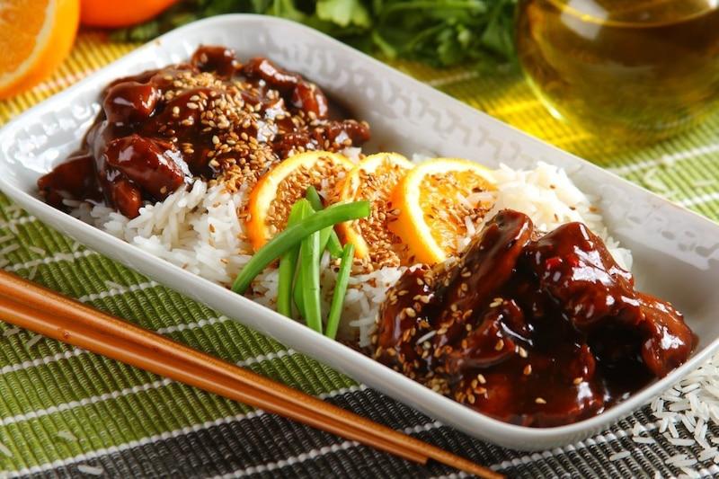 • Kurczak w sosie teriyaki – egzotyczna propozycja z ryżem jaśminowym.